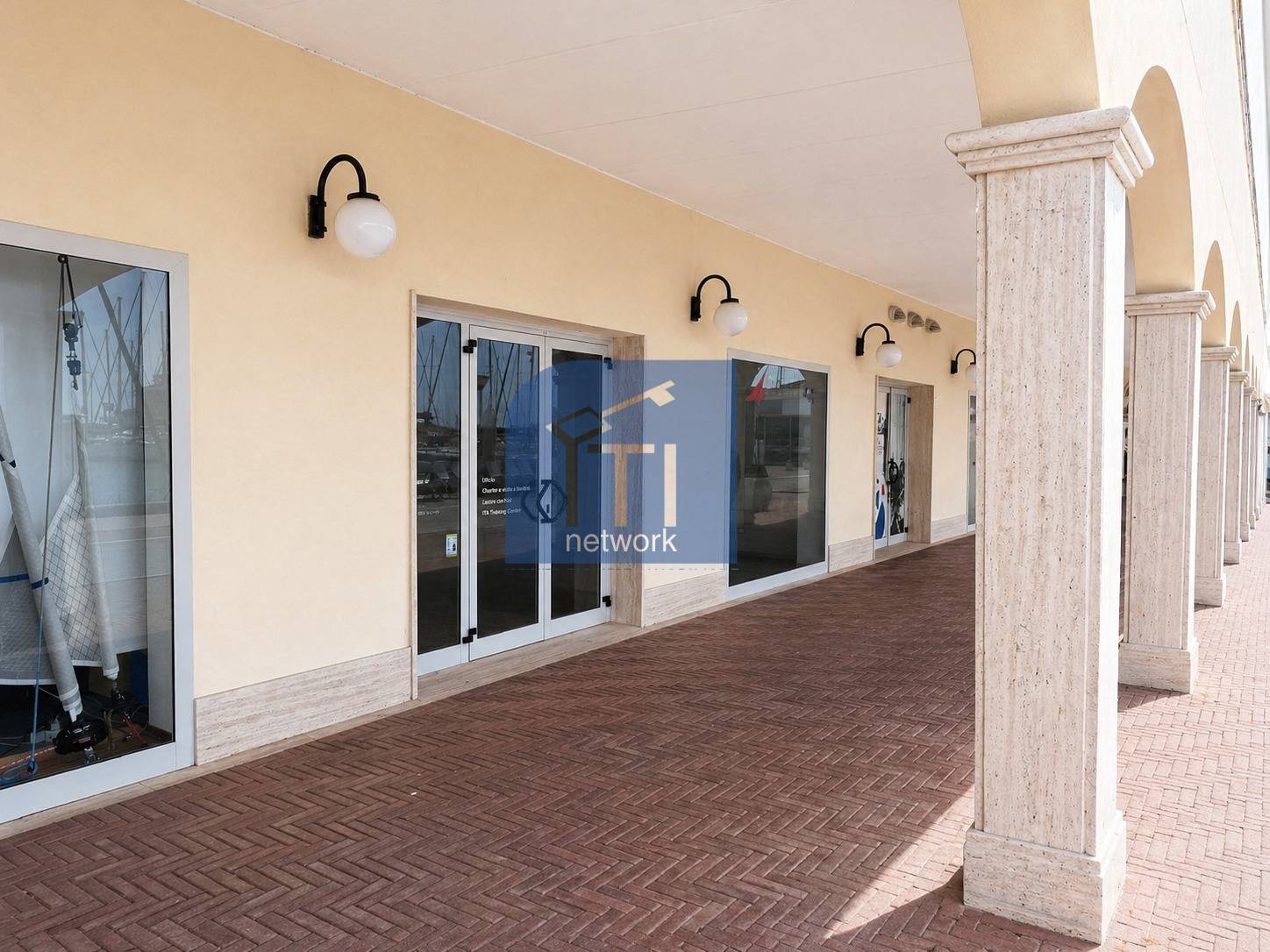 Il locale, in ottimo stato, esternamente si presenta con un ampia vetrina e una porta vetrina che assicurano un alto grado di visibilità agli utenti e ai visitatori del Porto Turistico, la sua esposizione sulla linea dell'orizzonte, lo rende luminoso durante l'intero arco della giornata; internamente si suddivide con un'ampia zona commerciale ed espositiva e nel retro, uno spazio utile come magazzino, quindi il bagno e antibagno.